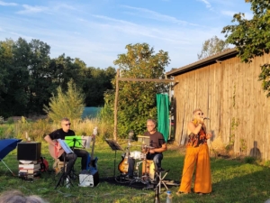 Ein Sommernachtstraum gestern in unserem Garten: chillige, lebensfrohe Latin Jazz-Klänge von Tocando Poemas. Magische Momente. Glückliche Gäste. Und unsere Schnuffels, die nach der Begrüßung gar nicht mehr von der Bühne, sondern direkt in den Background Chor wollten. Ein Traum! Hört mal rein!