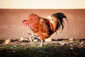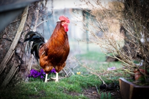 Karim kräht Euch fröhlich „Frohe Ostern“ entgegen. Unser Juniorchef im Harem entging als kleines Küken nur knapp einem Anschlag einer eifersüchtigen Henne und wuchs fortan als Einzelkind auf. Vermutlich vor lauter Schreck über den Vorfall wollte er nicht richtig wachsen, so dass seine Mutter irgendwann die Geduld verlor und ihn allein ließ. Monatelang hing er dann am Rockzipfel seiner Menschen, denen er immer noch sehr zugetan ist. Ist er nicht ein prächtiges Kerlchen geworden? Zusammen mit seinem Vater Rhett Butler, dem er wie aus dem Gesicht geschnitten ist, wacht er über die bunte Hühnerschar. Na ja, ein bisschen wichtig nimmt er sich schon…