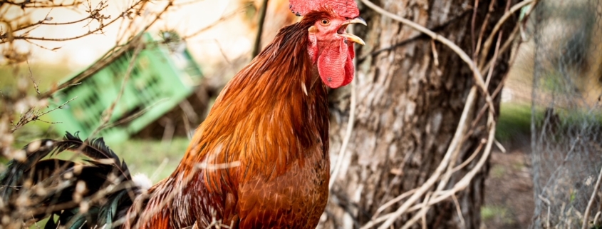 Karim kräht Euch fröhlich „Frohe Ostern“ entgegen. Unser Juniorchef im Harem entging als kleines Küken nur knapp einem Anschlag einer eifersüchtigen Henne und wuchs fortan als Einzelkind auf. Vermutlich vor lauter Schreck über den Vorfall wollte er nicht richtig wachsen, so dass seine Mutter irgendwann die Geduld verlor und ihn allein ließ. Monatelang hing er dann am Rockzipfel seiner Menschen, denen er immer noch sehr zugetan ist. Ist er nicht ein prächtiges Kerlchen geworden? Zusammen mit seinem Vater Rhett Butler, dem er wie aus dem Gesicht geschnitten ist, wacht er über die bunte Hühnerschar. Na ja, ein bisschen wichtig nimmt er sich schon…